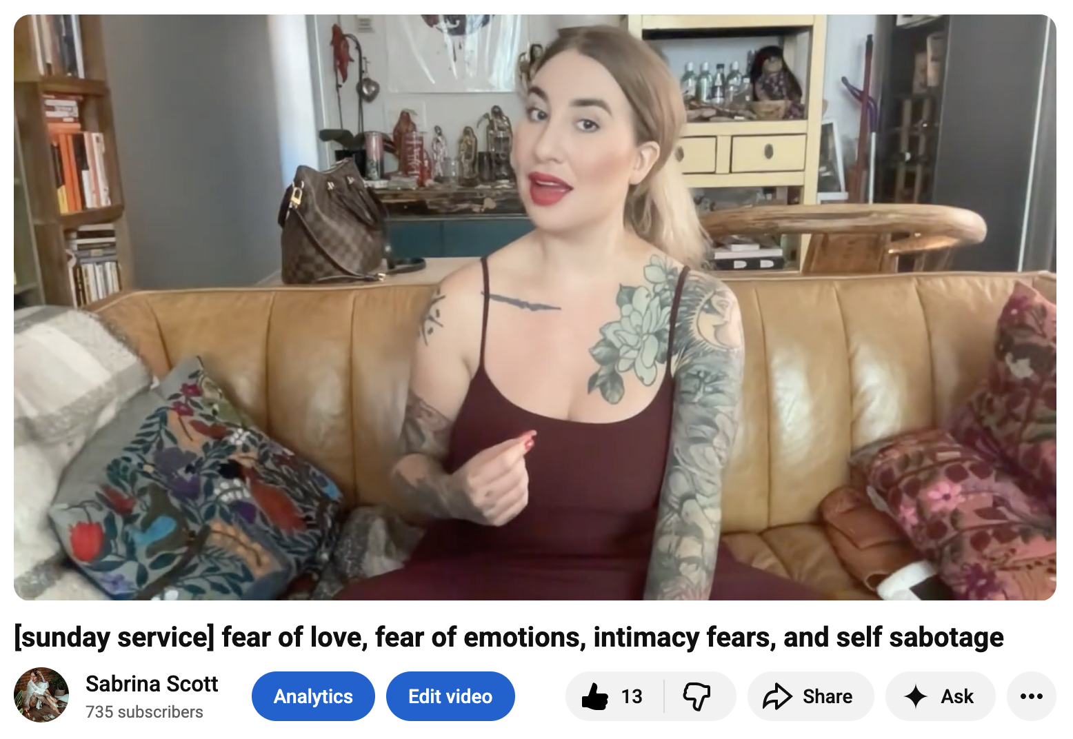 Fear of Love, Fear of Emotions, Intimacy Fears, and Self Sabotage | Sunday Service with Sabrina Scott on YouTube